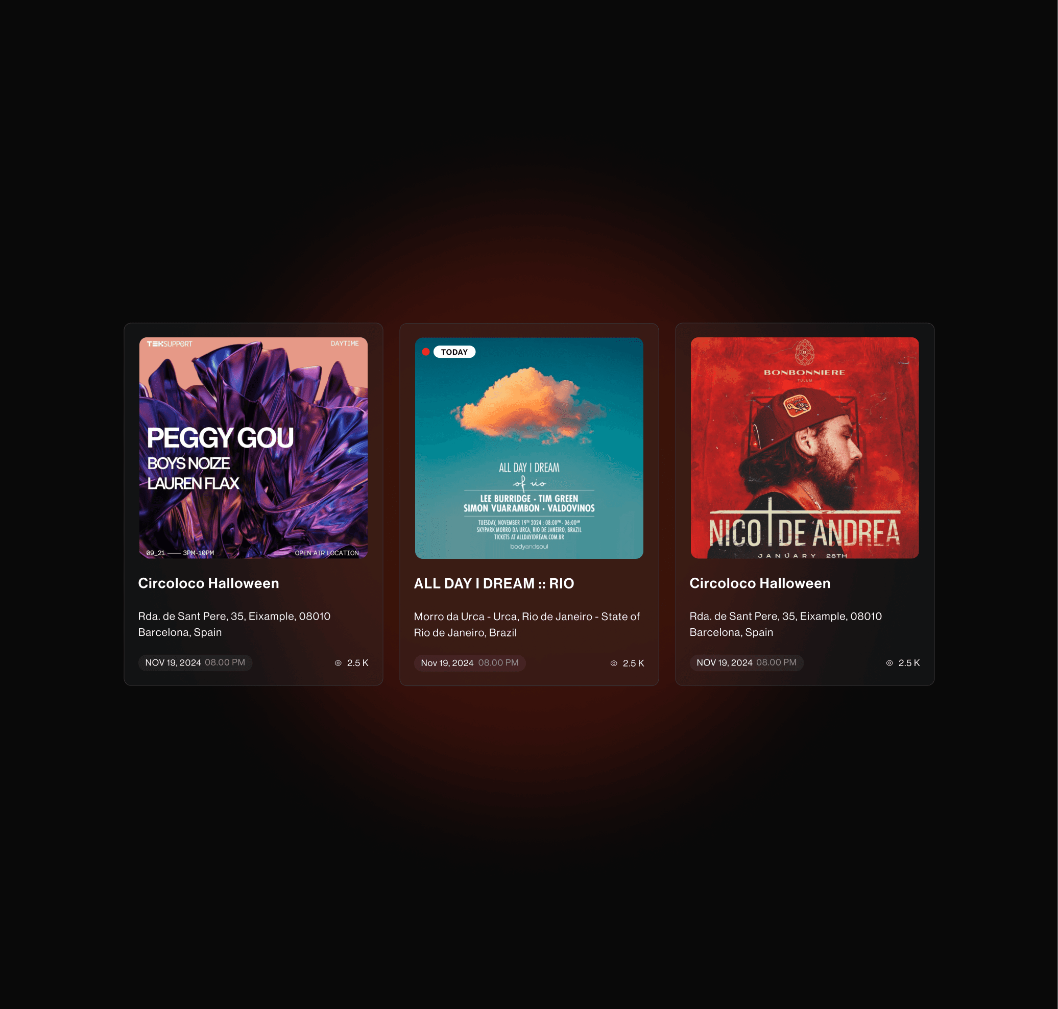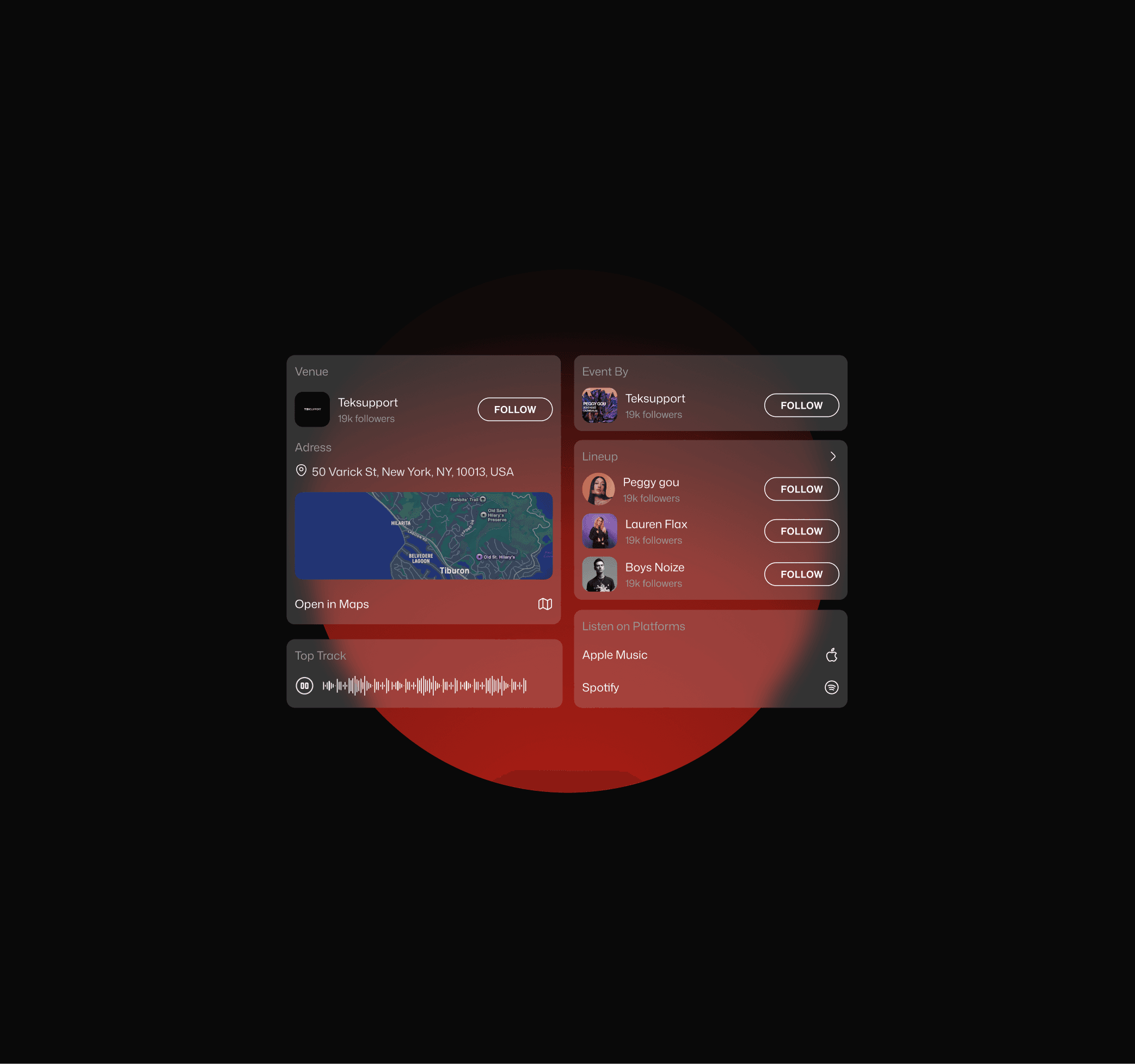 Designed a tailored home experience that highlights events based on user interests, music integrations, social data, and location.
